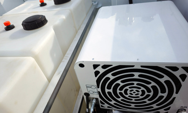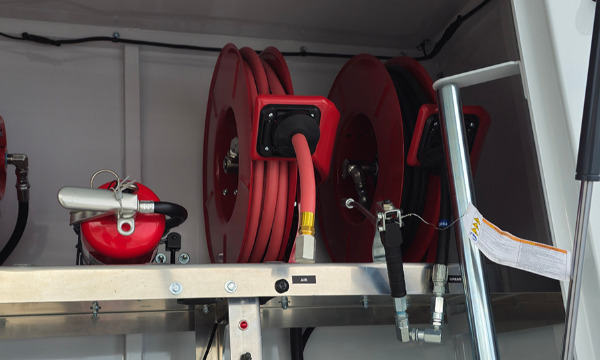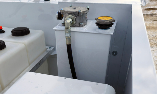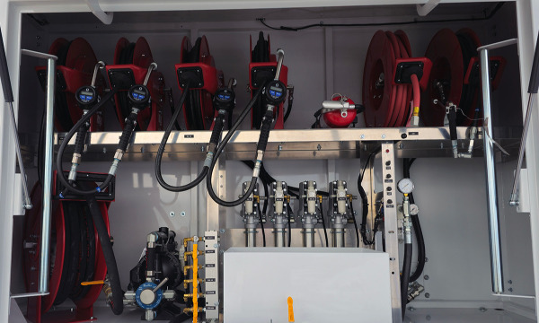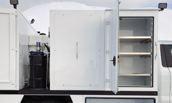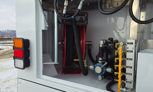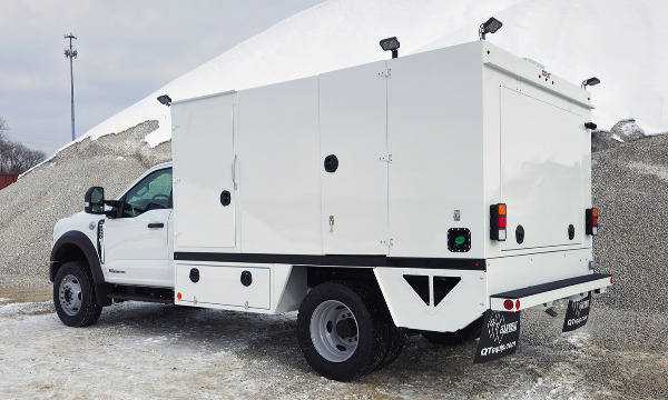 Ford F600 4x4 with 11' TORKT® Mini Lube Body. (2) 135-Gallon Product System. (2) 75-Gallon Product Systems. (1) 250-Gallon Steel Salvage System. 120# Grease System. Boss BA440 Air Compressor, American Eagle Toolbox.